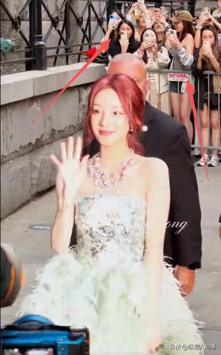 可再仔细看,她的礼服却暗藏槽点:看似简约大气,实则皱巴巴的,衣角甚至起了毛边,像是临时翻出来的旧衣服。