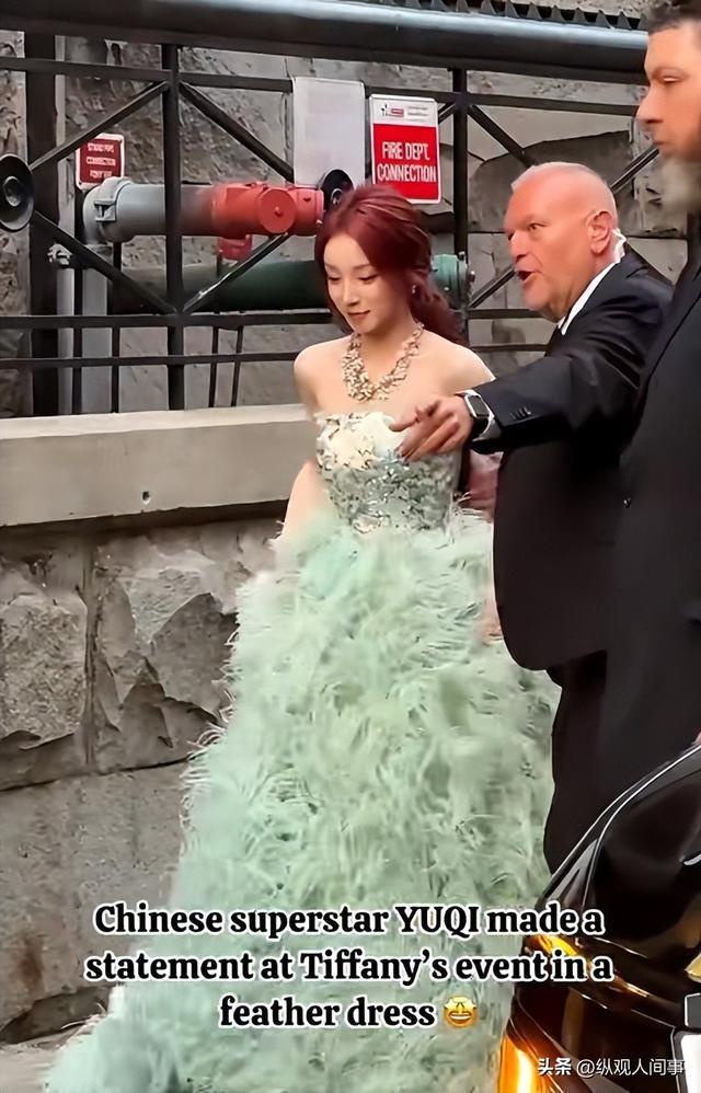 这身礼服与Tiffany高珠的璀璨格格不入,瞬间拉低了整体高级感,网友调侃“这是得罪造型师了吧”。